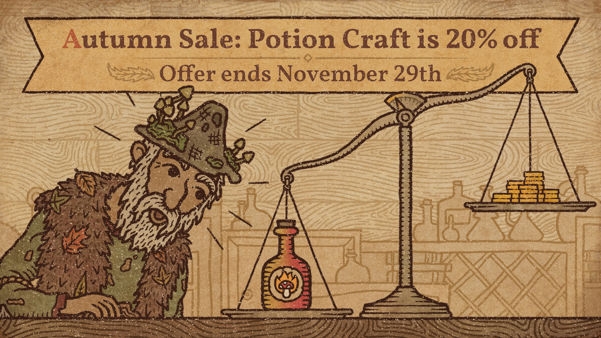 Winter is fast approaching and the holiday season is soon to begin. Potion Craft is currently 20% off during the Steam Autumn Sale and would make the perfect gift for an aspiring alchemist! You can, of course, treat yourself too and save yourself a few coins.