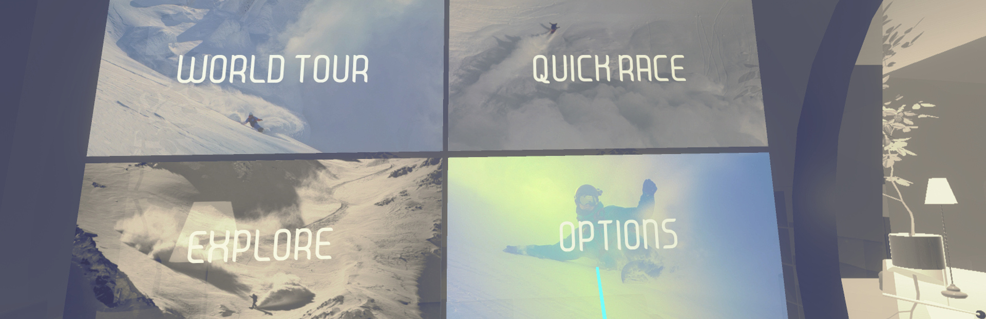 So much has changed since we started Powder VR that it was time to update the main menu. The idea of spawning into an open-world snow park and having to find your way to each course has been deprecated in favor of an instant quick race option. After a lot of testing, we found out that the snow park was just too technical for beginners.