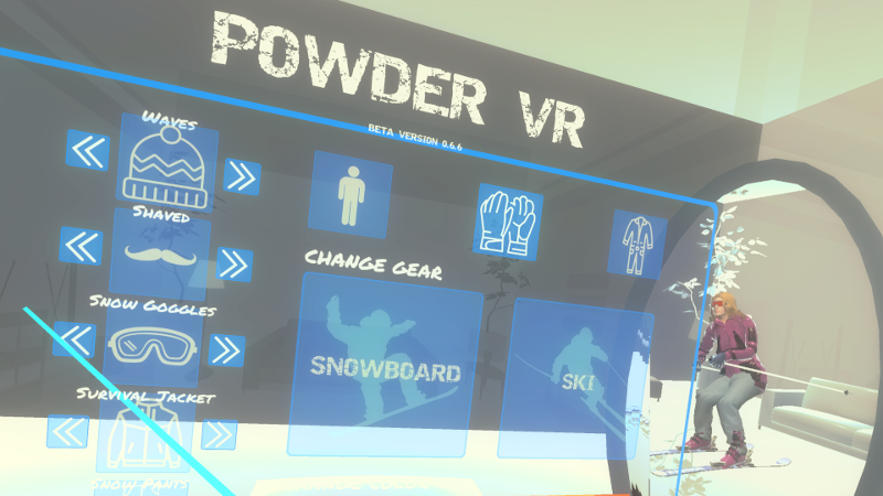 Now you can enjoy complete Avatar Customization in Powder VR. In the up and coming release you'll be able to make them your own. Select hat facial hair, goggles, snow jacket, pants and the color in as you prepare your decent down the epic mountains and scenic terrain.