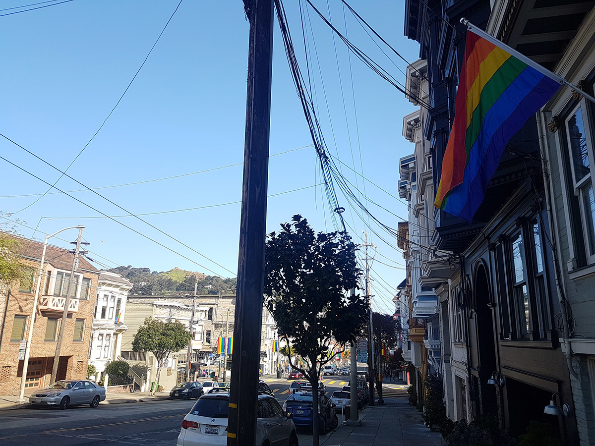 When we were in San Francisco for the Game Developer Conference, we did a walkaround in Castro, the historical LGBTQ+ neighborhood of San Francisco. We arrived there to visit the place where Milk began the LGBTQ+ revolution in San Francisco. To see the place with our eyes and to smell the colors of the sky. On the sidewalk, we found portraits of superimportant LGBT people, as Sylvester and Alan Touring, the guy who created the first mechanical computer, used to decrypt the Nazi Enigma code, and then thanked with law penalty for his homosexuality. Everywhere rainbows! It was time of Bohemian Rapdosy, the hyperfamous movie on the life of Freddie Mercury, the Queen. Wonderful small theatre. Then the end of the street!