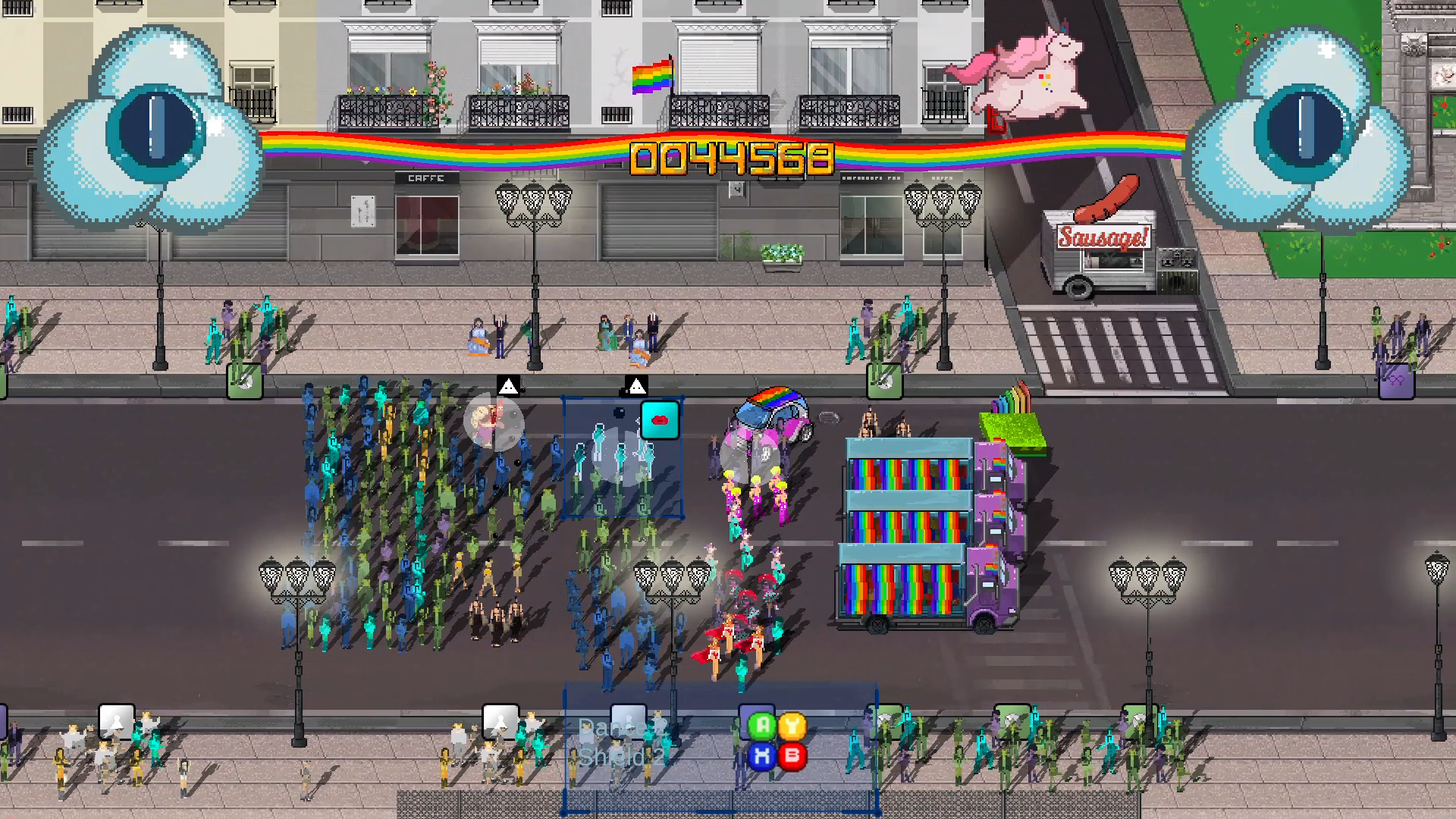 And you hear the music following the Pride level: as much the Pride bar (the rainbow in the top of the screen) becomes wider, as more the Pride is high!