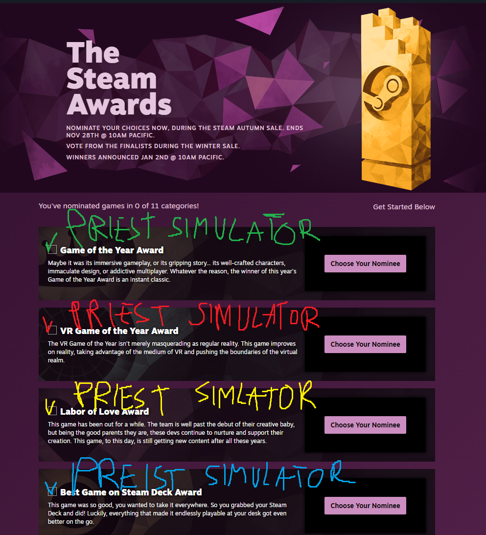 Hello, there is this Steam Adwords contest. You can win good prizes and stuff or lose everything etc. I send you the proper answers. Dunno if it's possible to vote like that, but you can try. Some things are worth dying for trying.