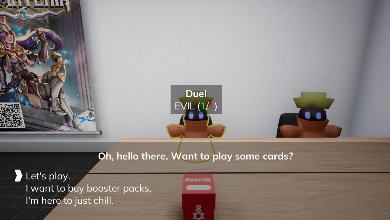 - NPC duelists use competitive, hand-tuned decks.