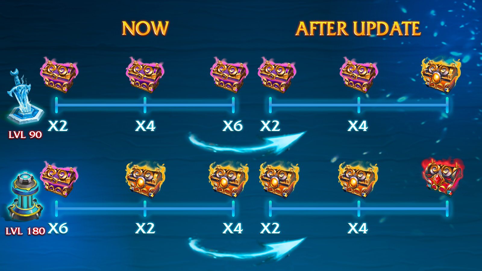 We regularly read your discussions, and we do not want to stand aside: we’ve come to a compromise, which, on the one hand, will not make getting mythic chests too easy, because this is the most valuable and rare game content. But on the other hand, it will allow you to get mythic chests at a more measured game pace.