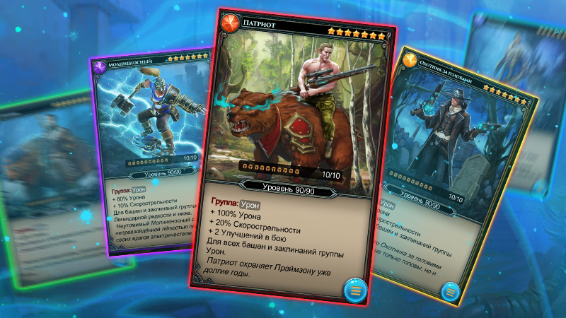 <*> Also, the value and even the number of bonuses depend on the rarity of the Hero. For example, the rarest (mythic) hero will give the cards of his group as many as three bonuses, including additional upgrades in battle!