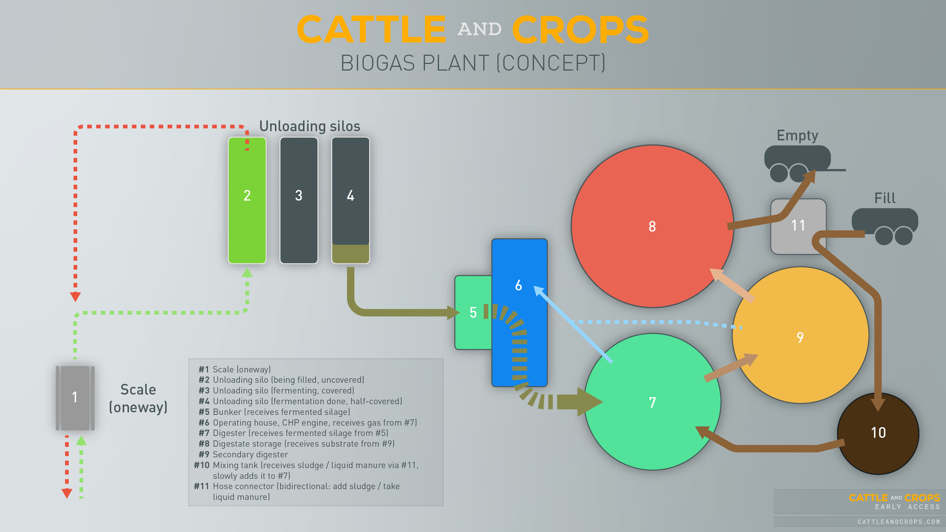 The current condition of the biogas plant (BGP) is limited to the basic sale of chaff. We know how important a BGP is for the gameplay and have decided for a step-by-step feature implementation.