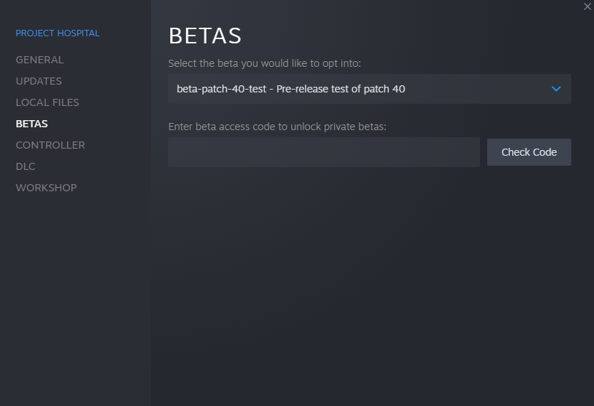 We're happy to announce that patch 40 for Project Hospital is almost ready to be released - if you'd like to help us with the last round of testing, you can switch to beta-patch-40-test in Properties in your Steam library.