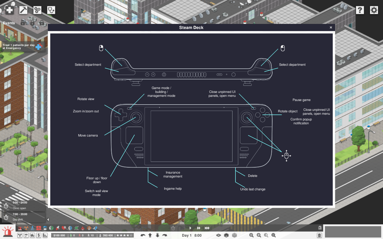 As we announced a couple of days ago, we're mostly ready to release the next update of Project Hospital which brings official support for the Steam Deck and the usual delivery of fixes and improvements including some welcome fixes of community translations.