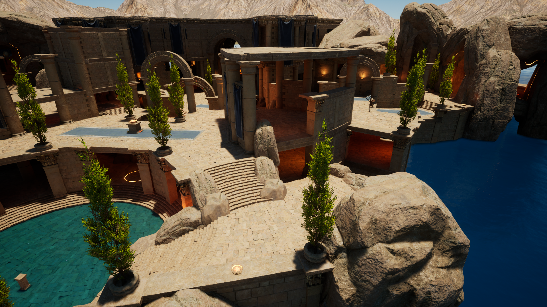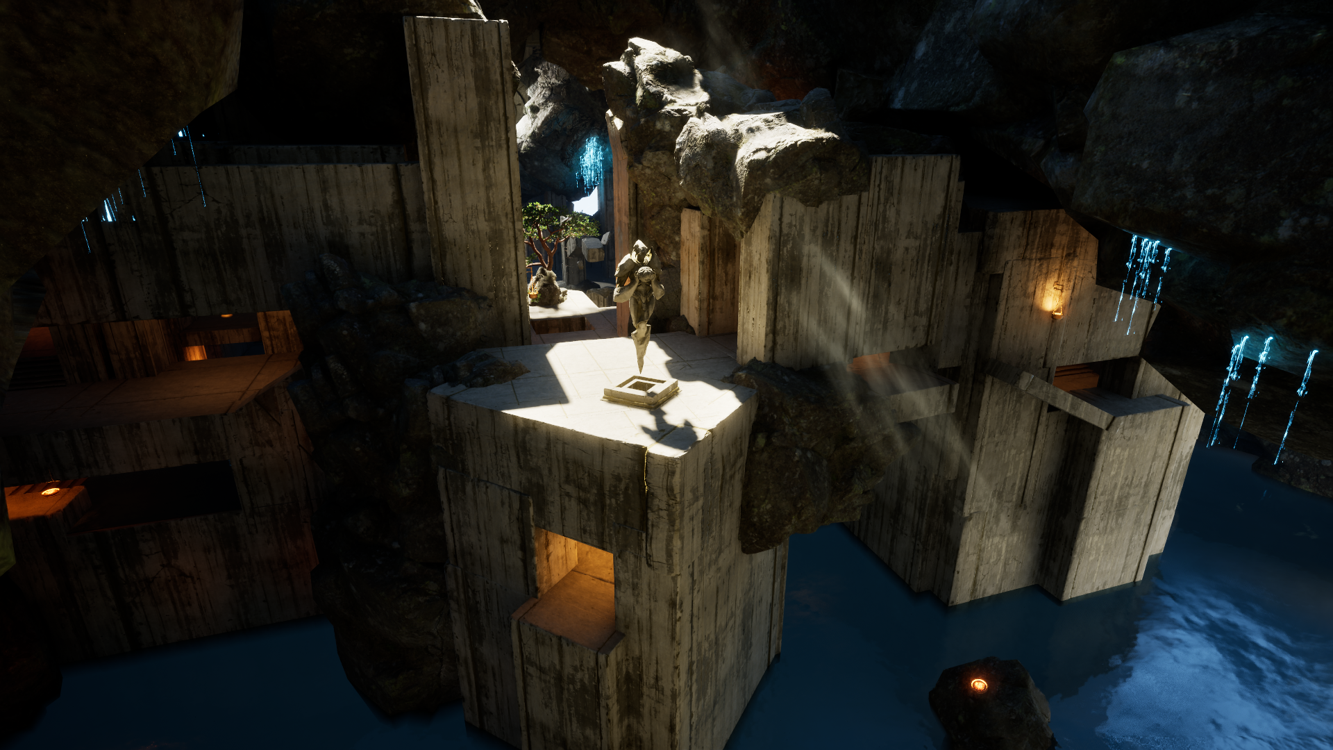 Sanctum: The moving platform that was in the sewer area now goes around the outside pillar and through the cave. It passes by the new entrance you can see coming out of the middle sewer. Sewer mid has been opened up more to allow more space to move through, as this was quite tight and didn't feel great to play around. Floating pillar added in mid to remove a strong sight line angle.