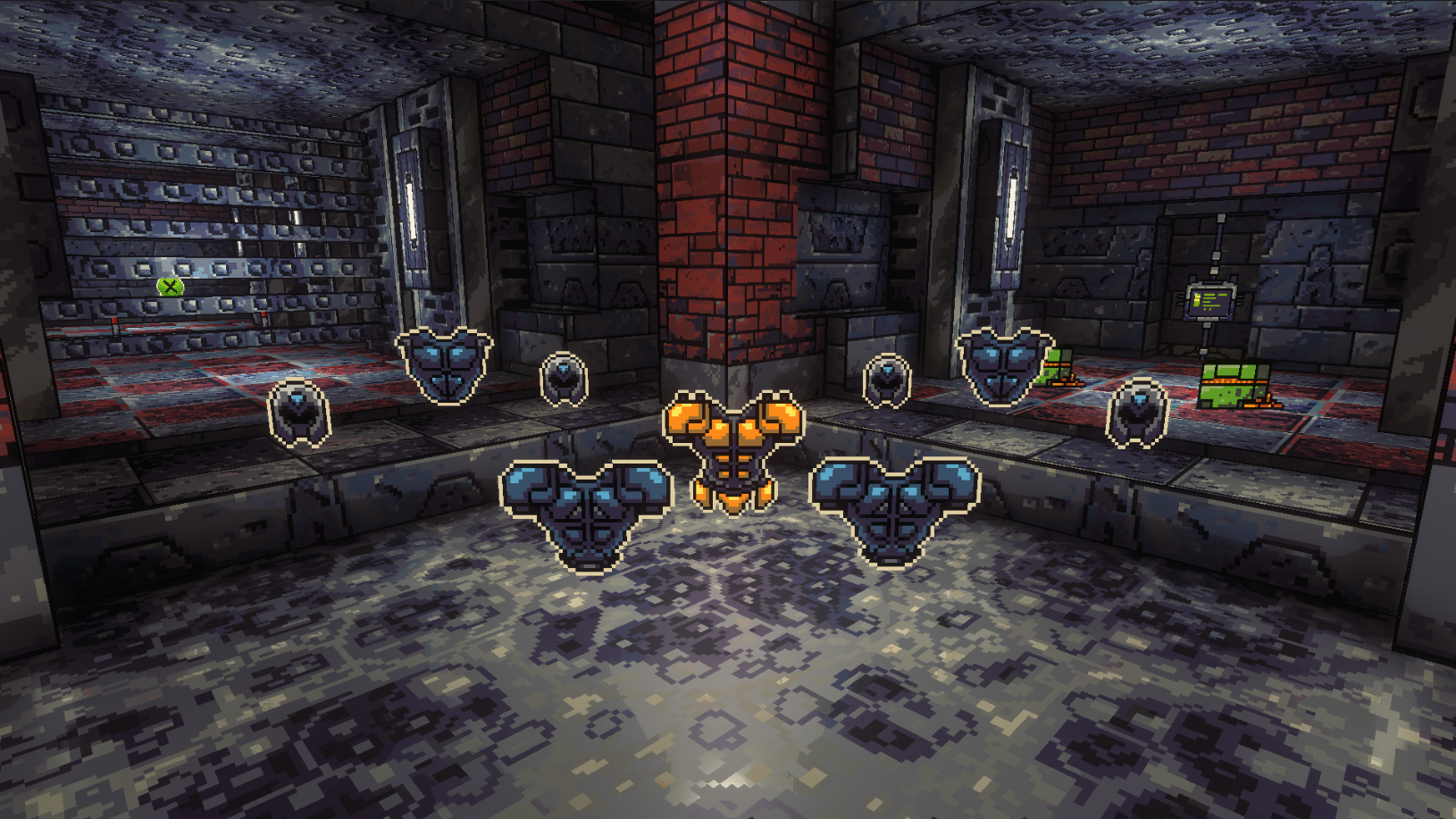 THE DROP BONANZA Currently, the number of drops from the enemies is being tweaked to make sure that each level provides the promised challenge. Vials of blood refilling health bar, cooldown tokens dropping as a result of successful combos helping recharge those spells faster, or shards of different colored armors restoring them to their pristine condition. All of these – in specific circumstances – have a tendency to fill out the screen if unchecked. Below is a sample of what that means. Spoiler: this one stays.