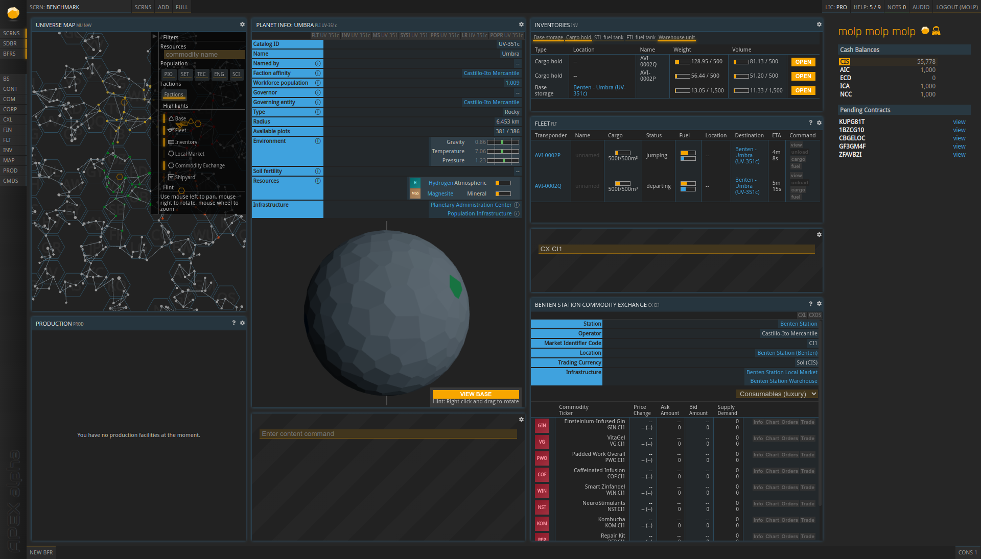 With the Liquidity Release, a major update has seen the light of day in July as well. It brought a host of new features. We introduced Leaderboards where players can compare themselves with others in many different categories, like amount of bases, ships, HQ level and most interestingly the production output for individual commodities and resources. The APEX representation center is a "show-off" feature that allows investing hard-earned currency to show your wealth to the universe. Another feature that has been received very well are loan contract templates. These extend the existing contract features and allow to hand out customized loans to other players. Especially new players profit from these, and it can speed up the early game quite a bit. The full release notes are available on the forums.