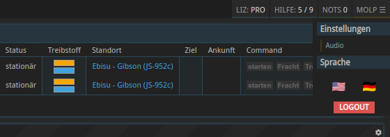 The logout button has been replaced with a drop down menu. It hosts the audio mute button as well as a new component that allows to switch between English and German.