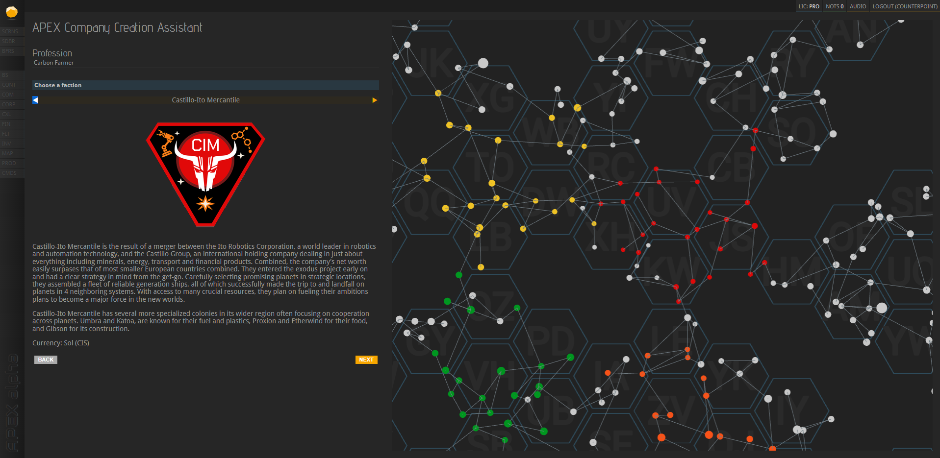 Next comes the Faction Selection. Next to the faction selection controls, we'll show the universe map with the factions highlighted, so the players get a sense of where everything is.