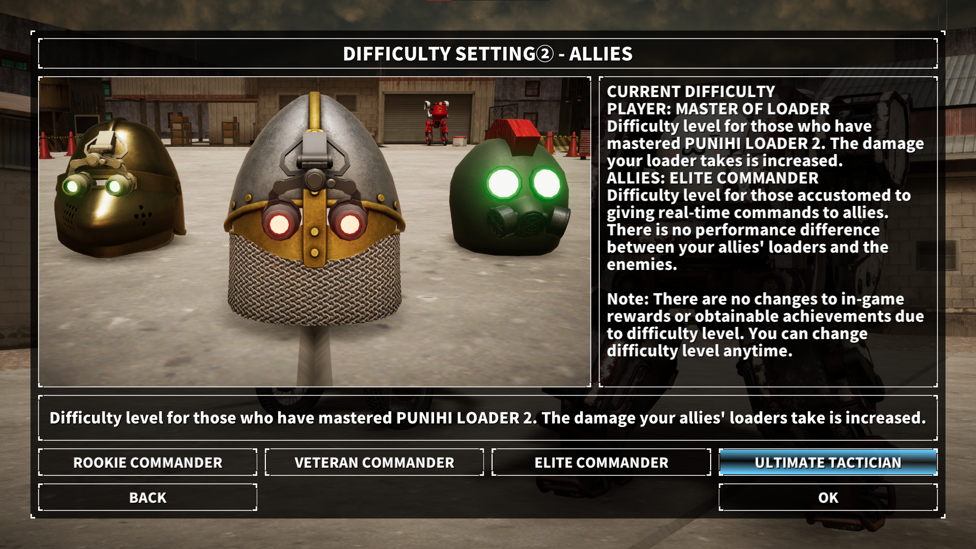 Difficulty settings have been added. You can adjust the amount of damage taken by player and allies.