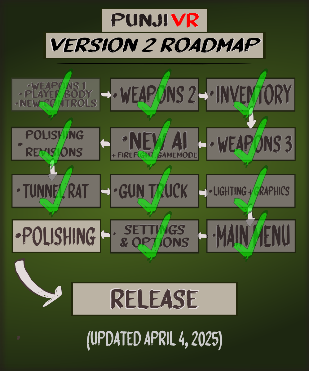 Note: These are the planned highlights for the next round of major updates, but minor additions, polishing, and bug fixes will also be included with each release even though they're not mentioned. Additionally, keep in mind that plans are not set in stone and that changes are to be expected. Overall though, this should give a good idea of what to expect for the future of PunjiVR.