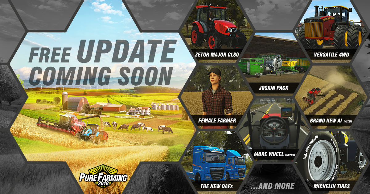 We're pleased to announce that the Big Machines Update (ver. 1.4) for Pure Farming 2018 is live right now.