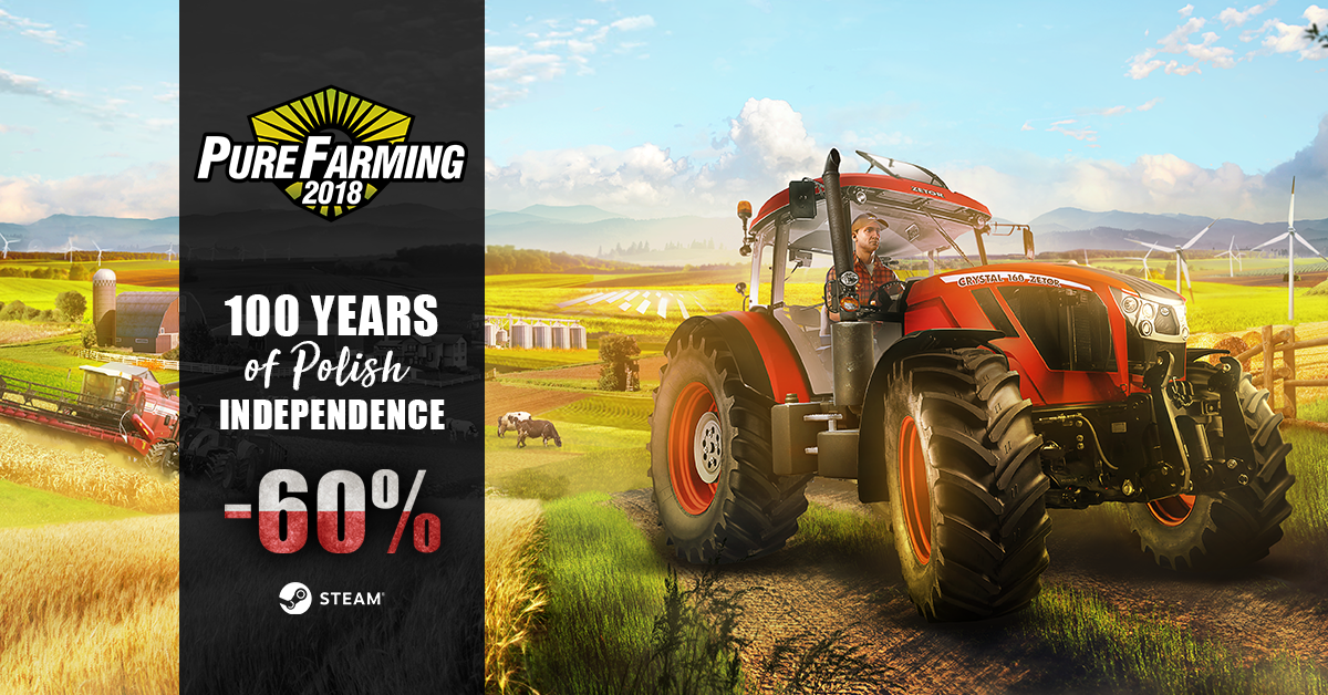 As you probably know, Pure Farming 2018 is the result of the passion of the highly motivated team located in Poland. We want to celebrate the 100th anniversary of regaining independence of Poland proudly. There couldn't be a better occasion to run a big Steam sale of the Polish games catalogue, in which we are more than happy to participate.