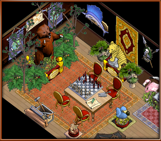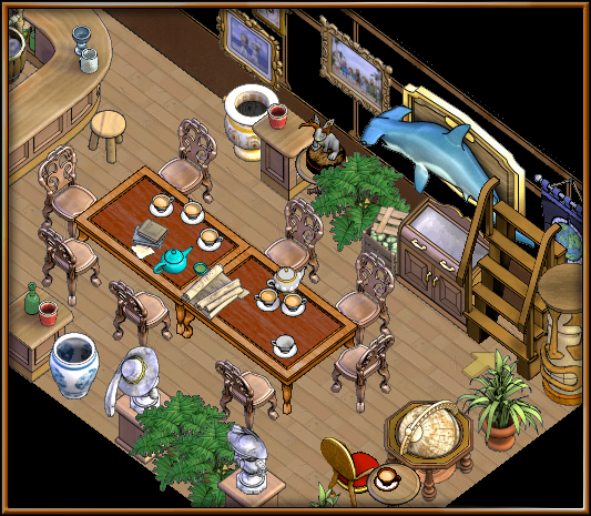 If yer a collector (and what good pirate isn't!), ye'll likely have a grand collection of furniture gatherin' dust in yer booty. If yer one to want to show off yer imposing assemblage, be sure to visit yer local island to find the Gallery! This expansive new house features large rooms with voluminous wall space, and a floorplan to showcase yer most complex arrangement of goods. Host a Gallery Exhibit! A whisk to yer Gallery will appear on the notice board for a week, and allow pirates to browse yer fine display.