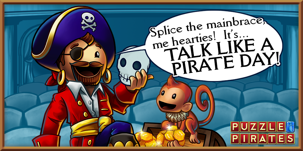 To celebrate Talk Like a Pirate Day, the Ocean Masters have scheduled special tournaments and puzzle competitions. Keep a weather eye on the events tab o' the Notice Board in-game! Ye'll find familiars, rare furniture, pets and sleeping animals as prizes!