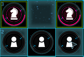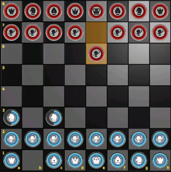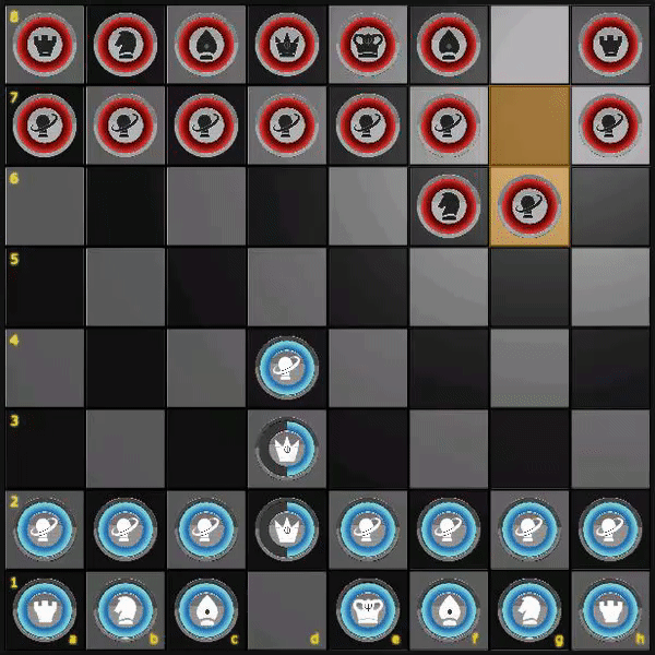 The Merge move is designed to undo a Split. The player will select two squares with the same type of piece, then select a single "target" that is reachable by both.