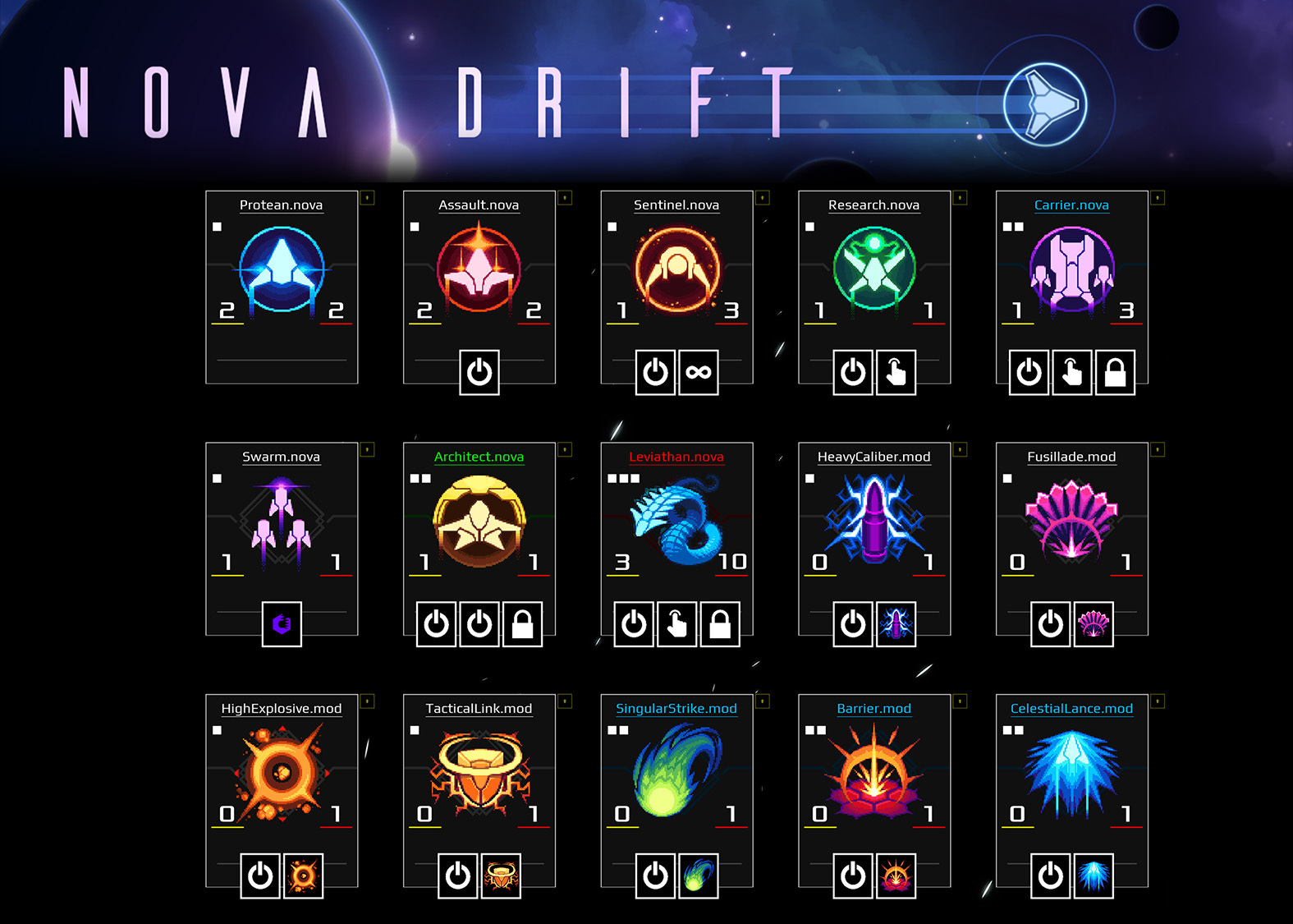 Many familiar ships and mods take on a new form, reimagined as Quantum Protocol cards. Play mods to mix and match effects onto your ships and discover new combinations every run! Will you go all in with damage? Or balance defensive mods with offensive power? Or maybe focus on setting up the field to drop the almighty Leviathan!!! The choice is yours.