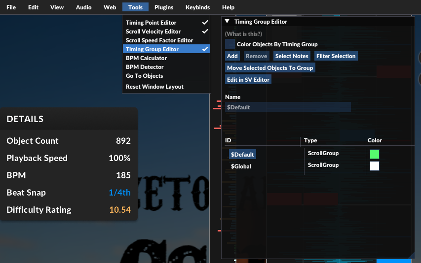 As a mapper, this means that you could now assign different scroll velocities to different sets of notes by using the new Timing Group Editor.