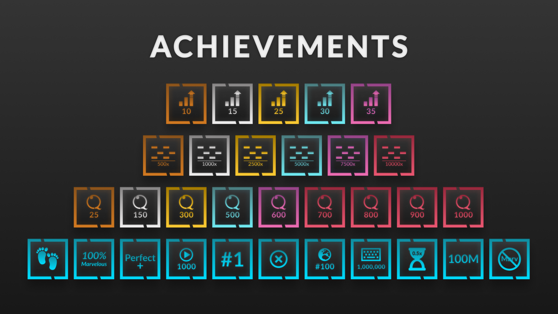 Achievement Hunters & Completionists - Your time has arrived! We've just released version 0.16.0 of Quaver, which brings to you our new achievement system. We've introduced over 30 achievements to unlock ranging from a variety of difficulties!