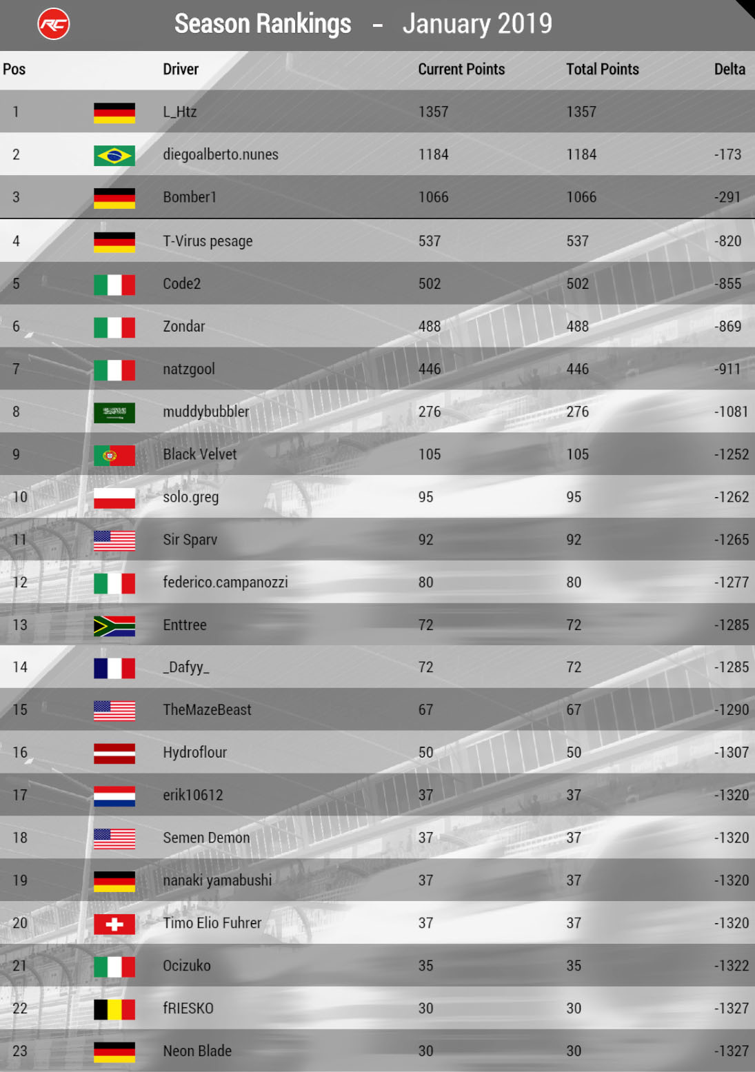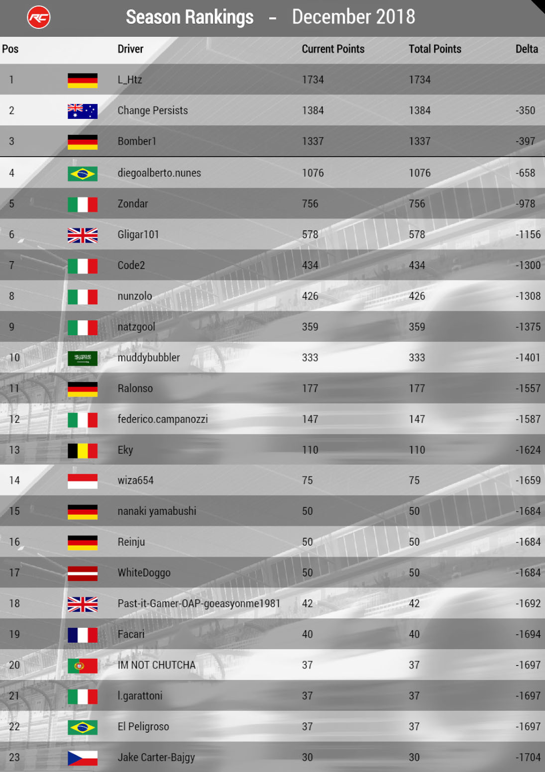 But without further ado lets break down the week by firstly announcing the winner of December 2018, the first German racer to win a Season in Racecraft, L_Htz! 🏆