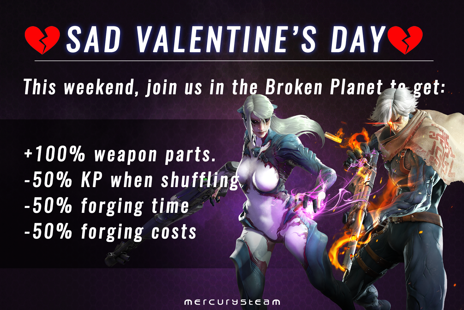 Welcome to SAD VALENTINES WEEKEND, 3 days in which you'll be able to forge amazing weapons, almost free!