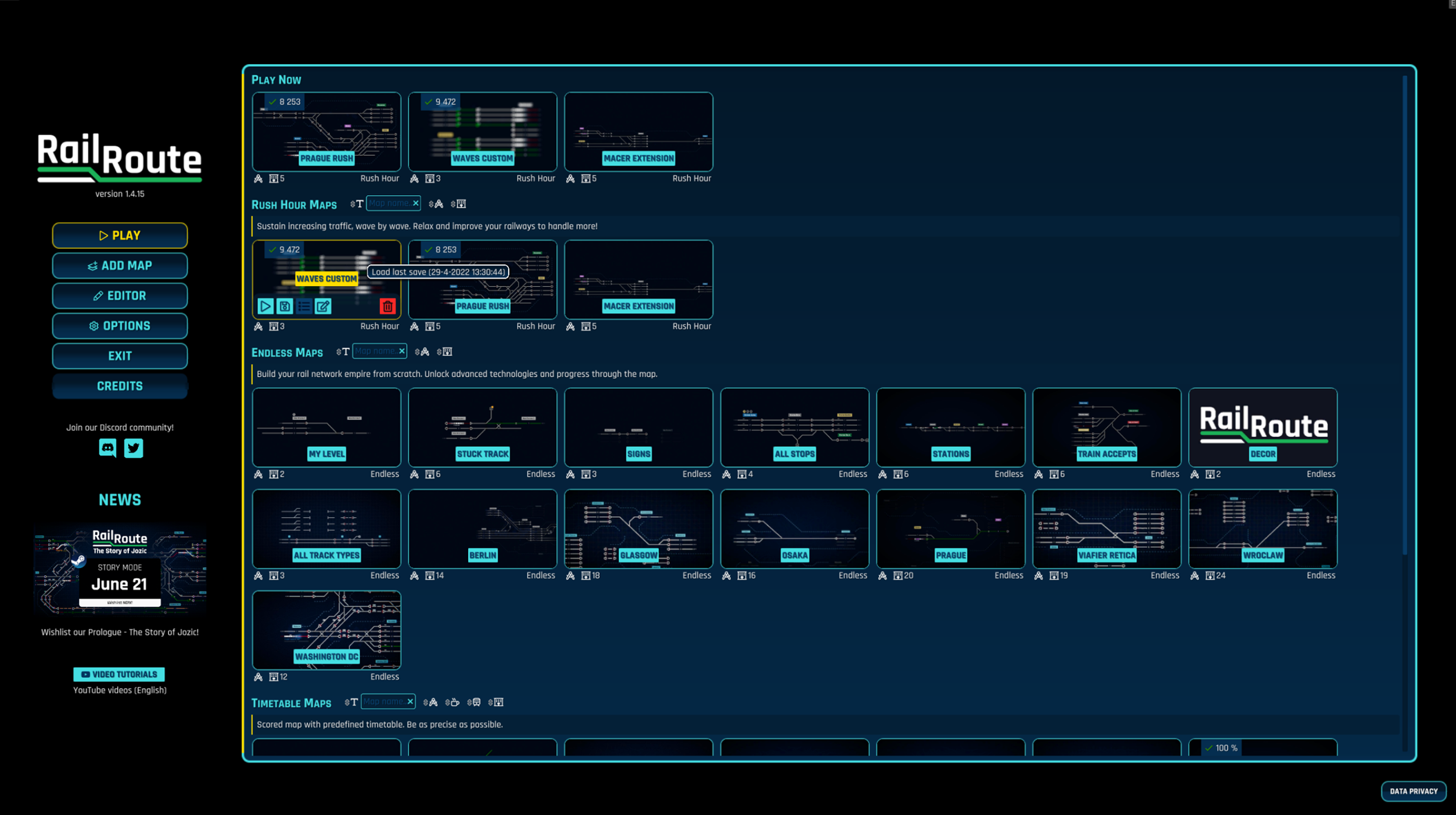 FIX: Alert sounds were not working FIX: Rejecting the trial train after accepting it in Run trial train task was locking the task FIX: Routing sensor override settings were removed when selecting different sensor FIX: Sensor detail panel did not update error message without selecting another sensor first FIX: System upgrades panel content had incorrect size for some languages FIX: Timetable's platforms where being hidden in the station details panel if the platforms numbers were above 11 FIX: With Manual Signal Safety turned on, one route from a manual signal via a crossing was not possible