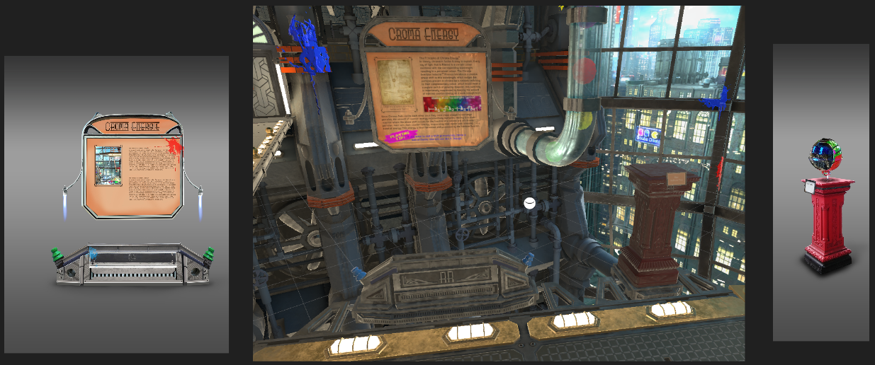 This feature is now really taking shape and it will help with a number of issues we got feedback on. It will add motivating unlockables to the game, as shift by shift, you'll be able to explore new teleport points and have a closer look at the factory, so we also get more freedom of movement and an opportunity to experience the surroundings, which are also getting further texture improvements at the moment. Another improvement it will bring is that the game mechanics will be explained better on the museum boards and you'll get some additional playing tips.