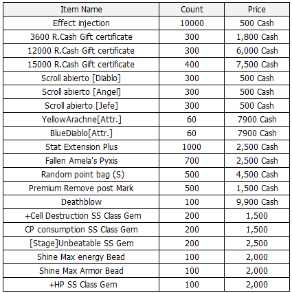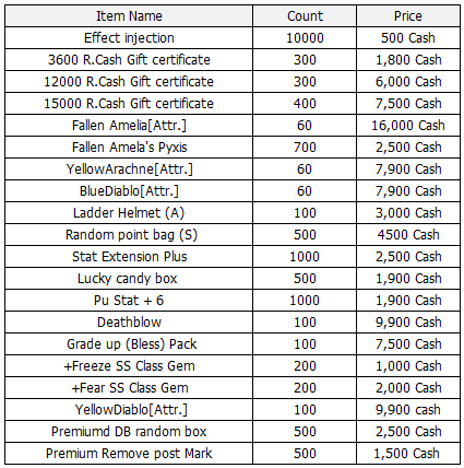 3) Happy Hour event(When you stay at the server at this time, you will get rewards) - 18:30 : One day Bonus Pack - 19:30 : Super Core(Advanced) - 20:30 : Random Cube
