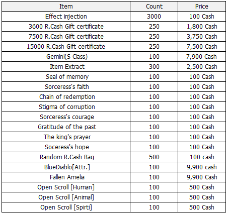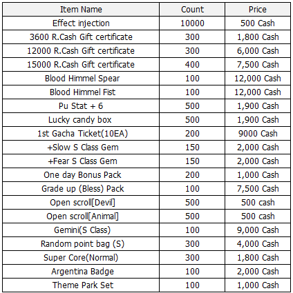 3) Happy Hour event(When you stay at the server at this time, you will get rewards) - 18:30 : Random Cube - 19:30 : Item Extract - 20:30 : 1st Gacha Ticket(1EA)