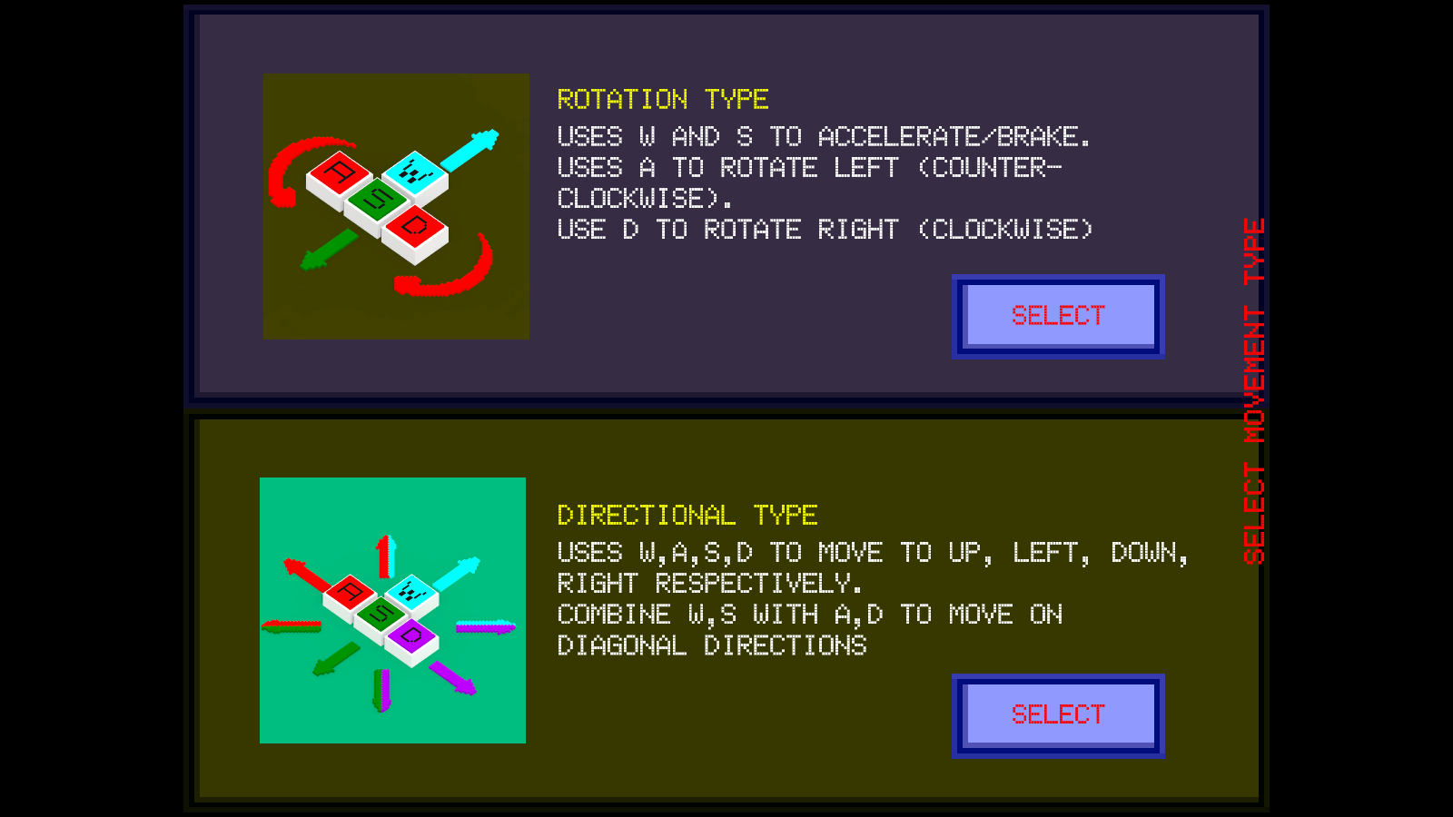Directional - Simpler mode, moves according to the direction of the keys (up (W), down (S), left(A) and right(D))