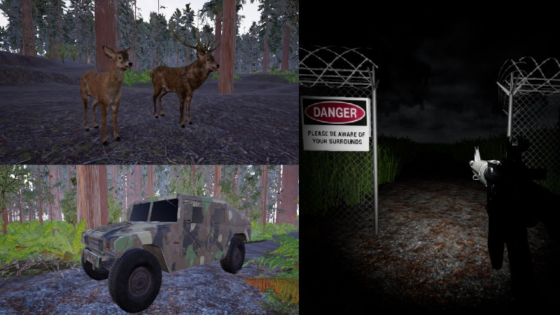 -large open areas to freely explore and find weapons in either daylight or at night (if you are brave enough).