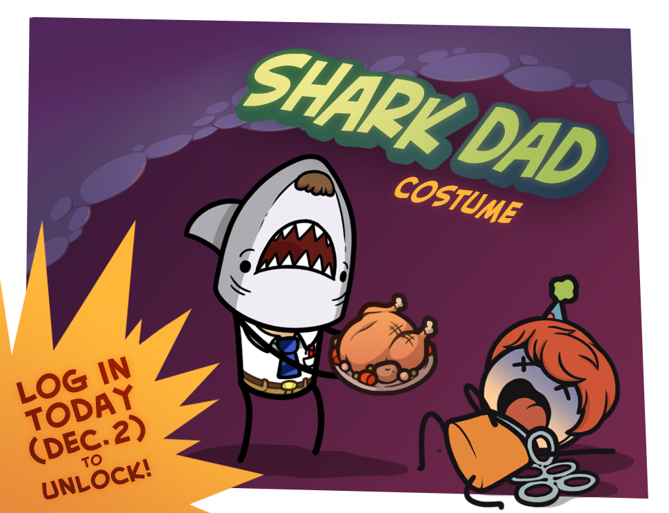 Log in between now and Dec. 3 at 10am PST (-8 UTC) and automatically unlock the Cyanide & Happiness Shark Dad outfit for your reject!