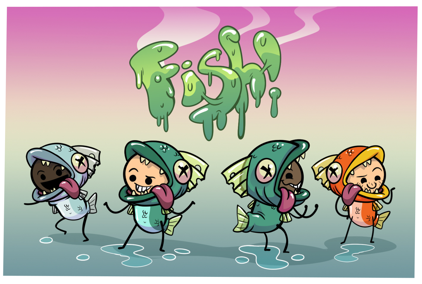 Time to spend those Golden Tickets you've been earning. You wanna get into Heaven, or look super cool down on apocalyptic Earth? Visit Satan's in-game shop for three fishy variants: grey, green, and gold!