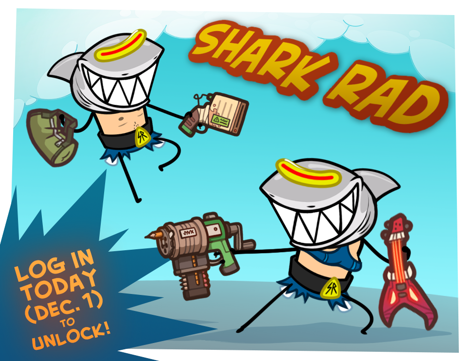 Happy FREE PLAY weekend, rejects! Everyone that logs in between 10am Dec. 1 and 10am Dec. 2 will get the Shark Rad outfit automatically in their rewards claim!