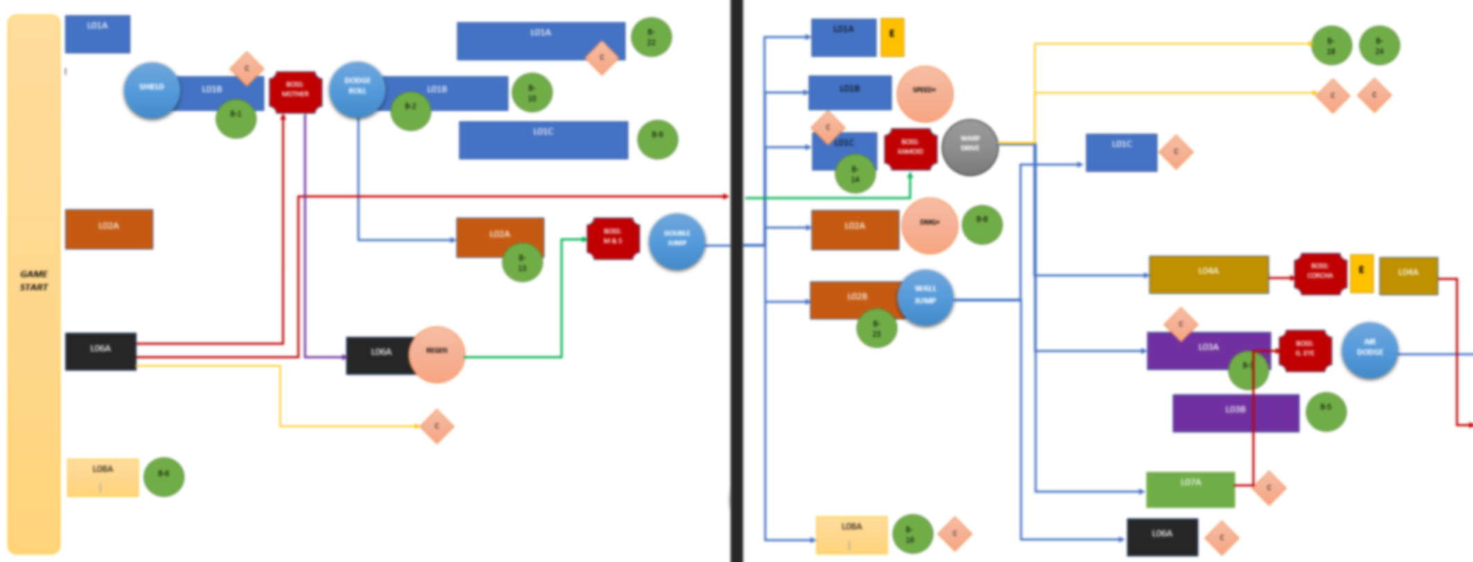 First things first. A sketch made in Photoshop. I have a list of enemies of mechanics that’ll be on a particular planet, that helps me plan things out to keep a nice variety. You wouldn’t want 3 puzzle rooms in a row right?