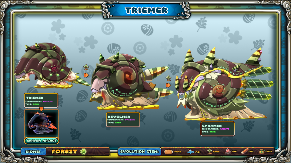 It is a bad idea for anyone unprepared to attack a Triemer, although they may seem slow and an easy target, a Triemer has one of the strongest bites listed in Library records. Its hard shell also blocks against most incoming attacks, deflecting and blunting all manners of weapons. A Triemer’s drills are also able to pierce through unsuspecting assailants, possessing an uncanny ability to project attacks using the power of its spin. My official advice is to leave these gentle giants alone, it won’t bother you if you don’t do anything that bothers it.