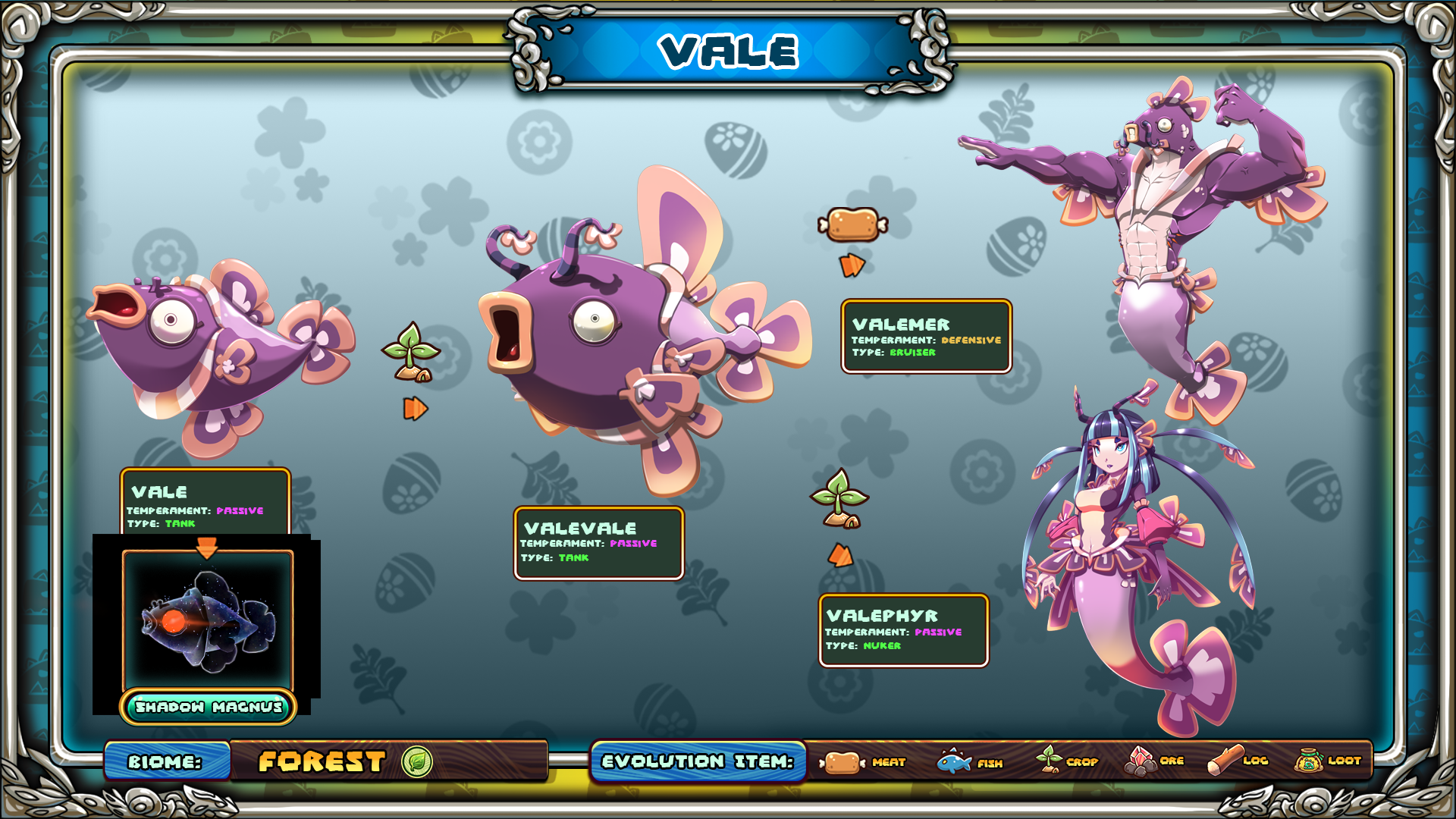 Metamorphosis of the Vale has stumped the researchers of the Library ever since their discovery. The fact that a fully piscine looking Valevale, will turn into the semi-humanoid Valemer or Valephyr still baffles the greatest minds of Ethia. Surprisingly the outer appearance of masculinity and femininity of the Valemer and Valephyr does not determine the gender of the creature. Female Valemers have been observed bearing young, to that I can attest to.