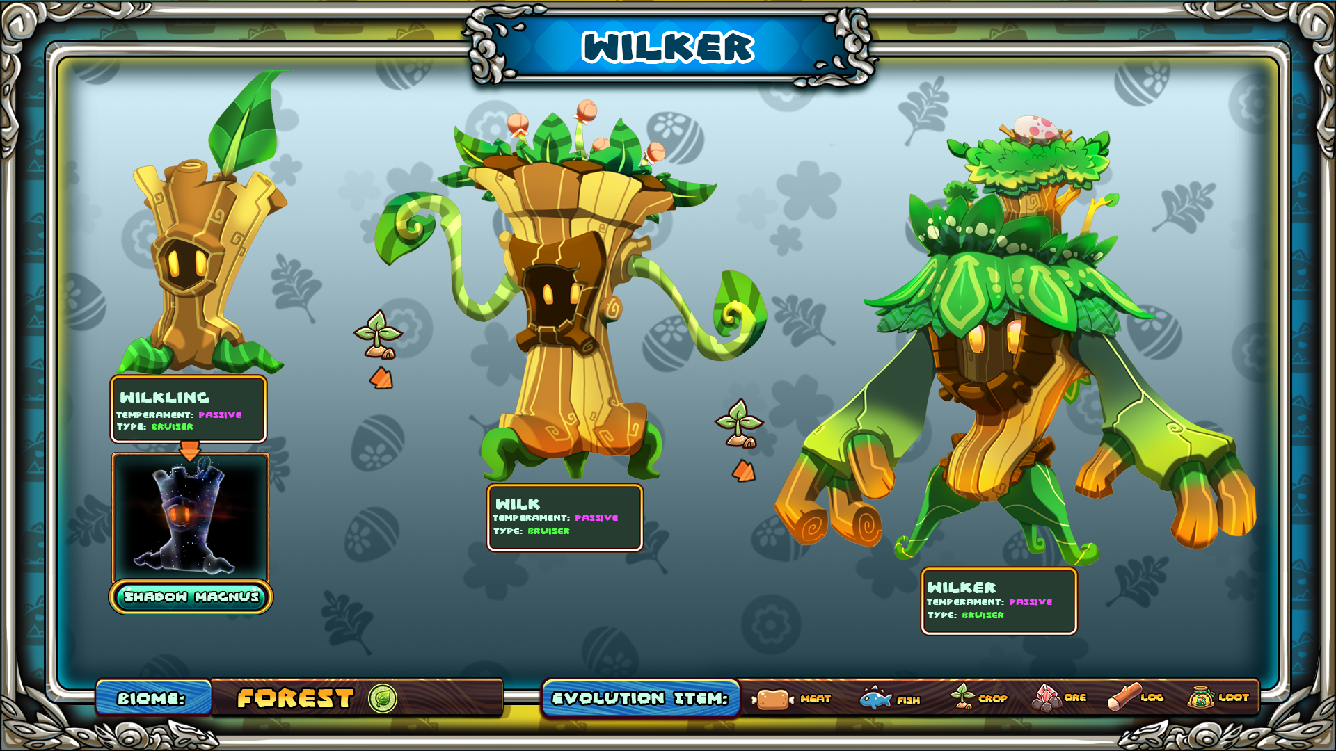 Within the woods that bears its namesake, the Wilker stands silently as the Guardian of the Forest Island. Known throughout history as a mild mannered and passive entity, many travel far to offer reverence towards the majestic Wilker. In recent years, the Wilker roams the woods less and less, and prefers the seclusion of the heart of the forest rather than the boisterous outer woods. Lucky adventurers will still bump into the Wilker and may receive its powerful blessing.