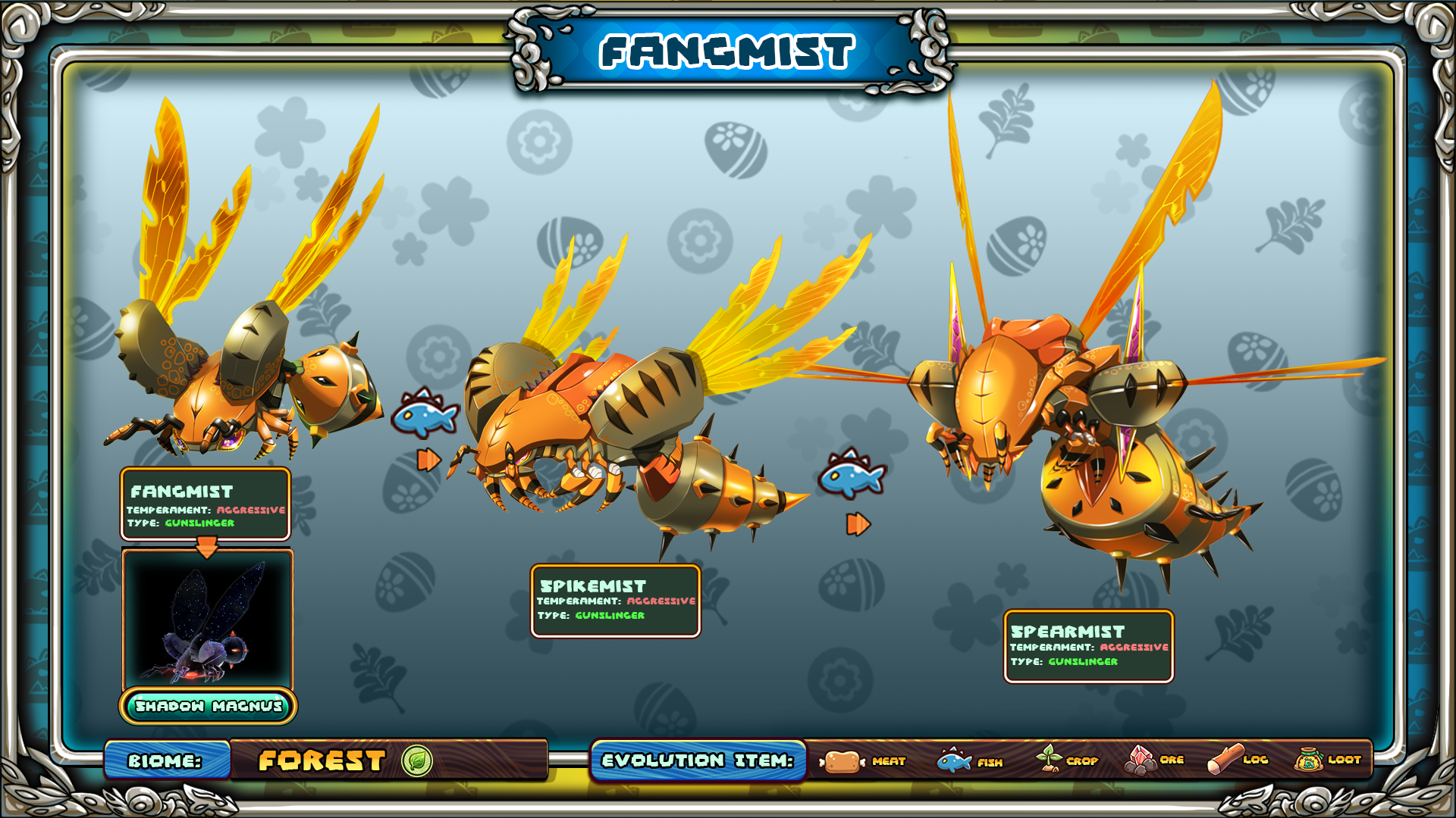 Remarkably, the main component of a Fangmist’s diet actually consists of honey and nectar collected from the flora of the Deep Wilkwoods. On rare occasions, Fangmists can be seen near water trying to spear for fish. It seems that the consumption of fish is vital for the growth of the Fangmist, but they do it only when they are at the stages close to their transition. The Library is fiercely interested in the honey that these Fangmist produce, but would caution all collectors to be wary of these insectoid nightmares.