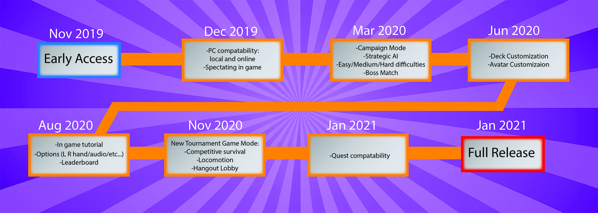 We are so excited to be going into Early Access and even more excited about where we want to take Re-O-Ri in the future! To that end we mapped out our plans on where we would like to take the development, and estimate when we think we can get those features complete: