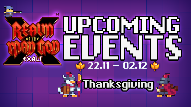 The Thanksgiving Banquet will be available from the 27th onwards. It will spawn at 95% Realm Score and drop various food items as well as mystery stat potions, Event Tokens and a chance at the “George the Turkey Pet Skin”.