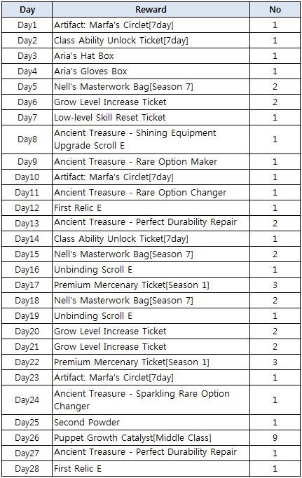 - Artifact: New Starry Blessing[3day] will be delivered to mailbox of all characters who log in during the event period.
