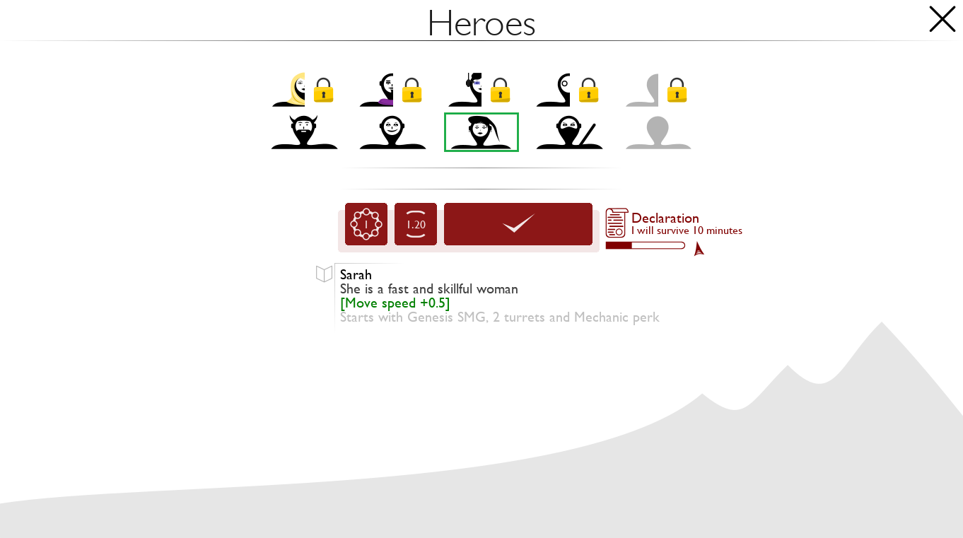 With this perk, your hero will smoke every 30 seconds and get +25% shooting and moving speed bonus for 10 seconds but lose 5 Maximum and current HP. Eventually, smoking will kill you, as in real life. This perk is not very strong, but it could be used on rare occasions (like when you are doing an achievement/mission, or in the late game when you have a lot of HP). The perk has a small additional effect of reducing the weight of Inferno by 50%, so you can finally carry that huge weapon for a bit.