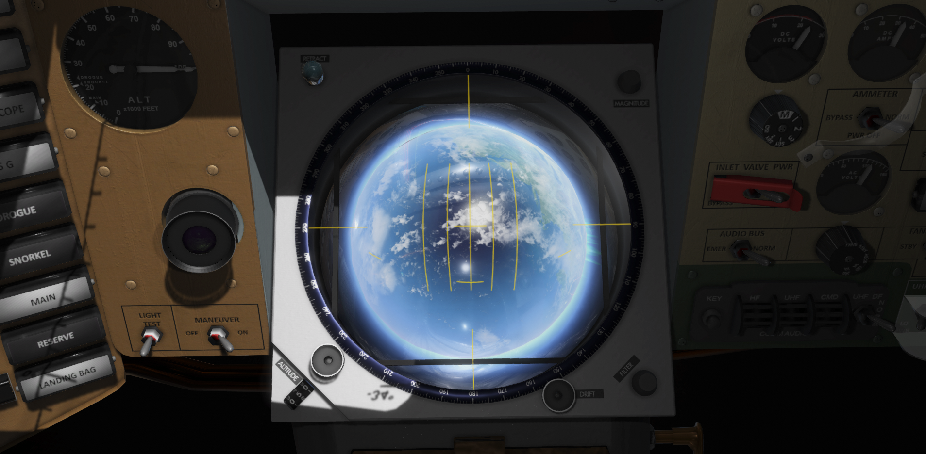 Project Mercury Cockpit Update: Navigation Reticle I have started to add a navigation reticle used to align the craft with the retrograde burn attitude. This scope was used in some Mercury Missions and is currently in its experimental phase and is installed on the right side of the window during development, but will later be moved as I make it more complete. However, it should now do the job it is designed for.
