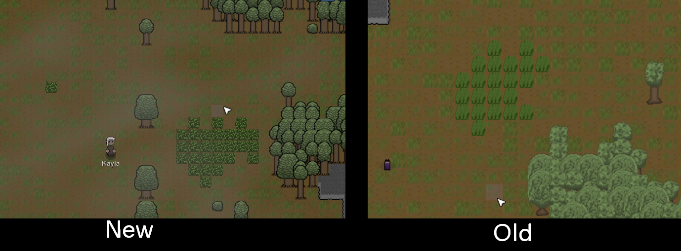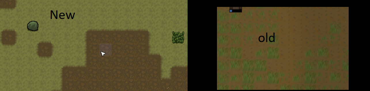 We have reworked the ground tiles from scratch making them look a lot less ugly an repetitive. As well as added more blending between different tile types. A picture of the difference will say more than I can so view below!