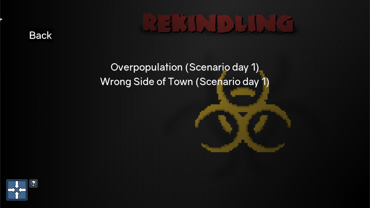 So you don't have to wait for your friends to make scenarios we have included two pre-built scenarios you can play though. 'Overpopulation' where you start with a large amount of survivors in a small area and have to build a colony to sustain and grow them even further, And 'The Wrong Side of Town' where you find yourself berated by raiders for multiple nights in a row and must find a way to live 10 days before they kill you.